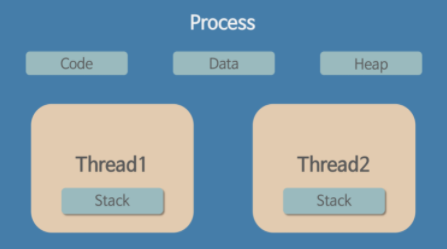 - 모든 프로세스에는 한 개 이상의 스레드가 존재하여 작업을 수행