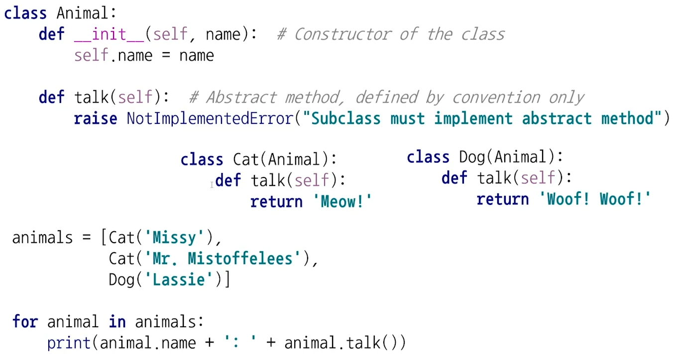 - Dynamic Typing 특성으로 인해 파이썬에서는 같은 부모 클래스의 상속에서 주로 발생함
