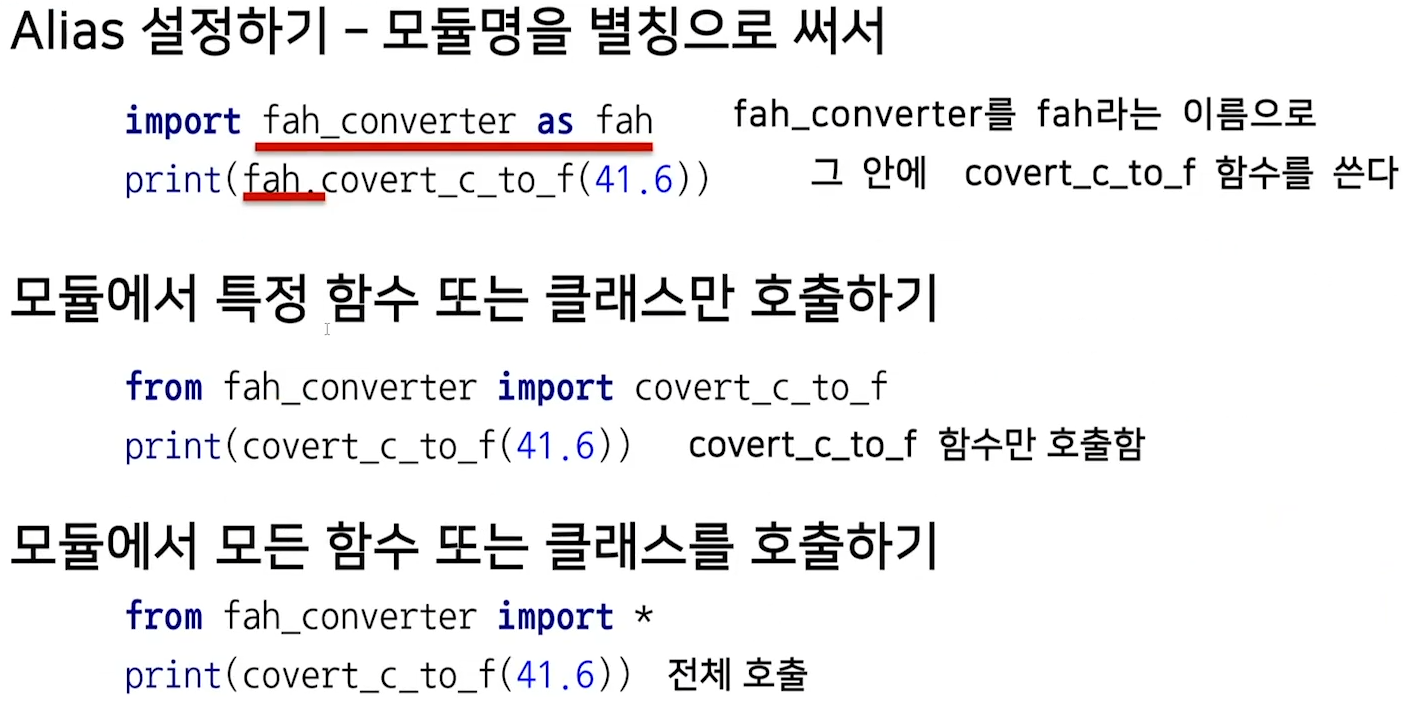 - 모듈 안에는 함수와 클래스 등이 존재 가능